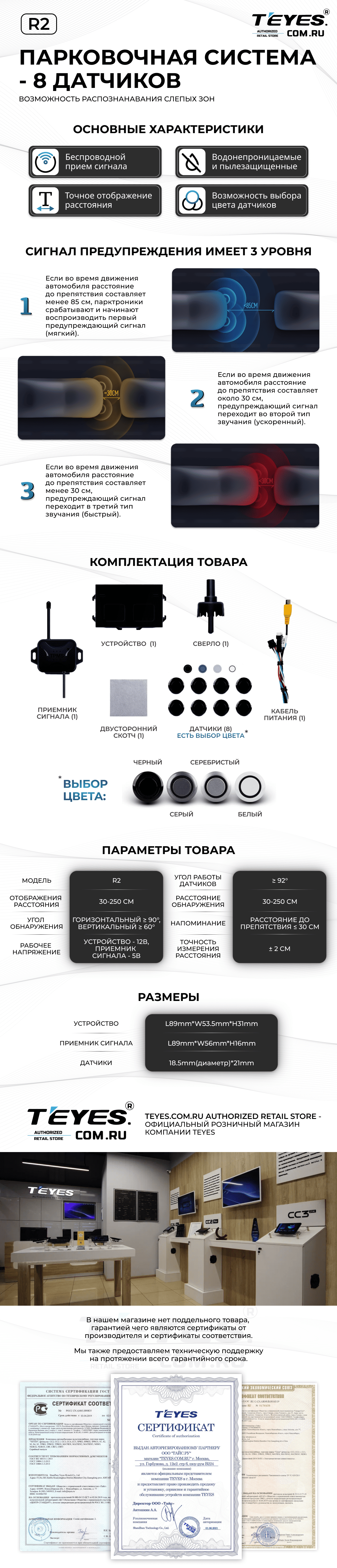 Передние и задние парктроники Teyes R2 для CC4 Pro / CC4 / CC4L / CC3 2K / CC3 / CC3L / CC2 Plus / SPRO Plus / TPRO2 / LUX ONE (Серые) 8-датчиков - купить всего за 21 900 руб. в интернет-магазине в Таганроге Teyes.com.ru. ✓ Самый лучший выбор мультимедиа ✓ Лучшая замена штатному ГУ ✓ Тел. +7 (800) 775-31-74