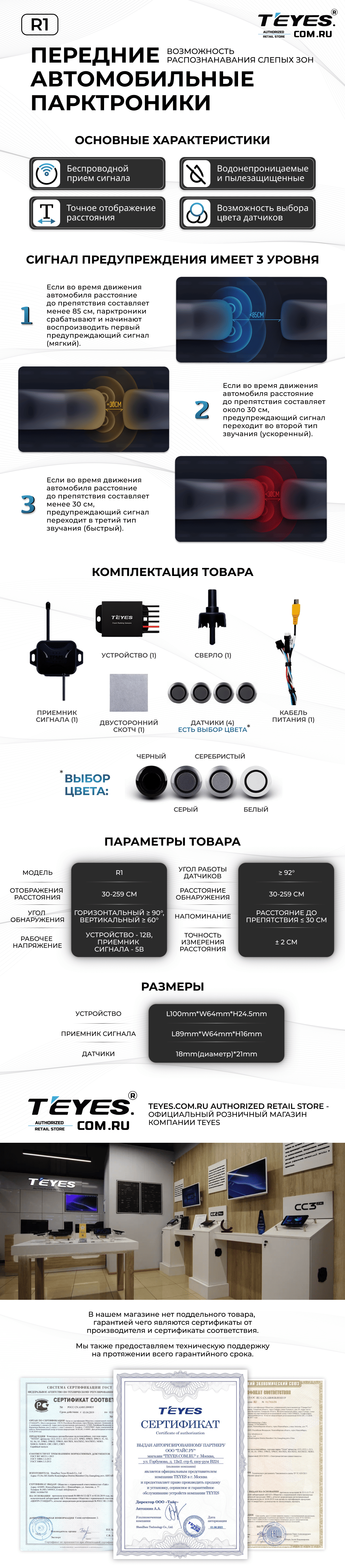 Передние парктроники Teyes R1 для CC4 Pro / CC4 / CC4L / CC3 2K / CC3 / CC3L / CC2 Plus / SPRO Plus / TPRO2 / LUX ONE (Серые) - купить всего за 12 900 руб. в интернет-магазине в Таганроге Teyes.com.ru. ✓ Самый лучший выбор мультимедиа ✓ Лучшая замена штатному ГУ ✓ Тел. +7 (800) 775-31-74