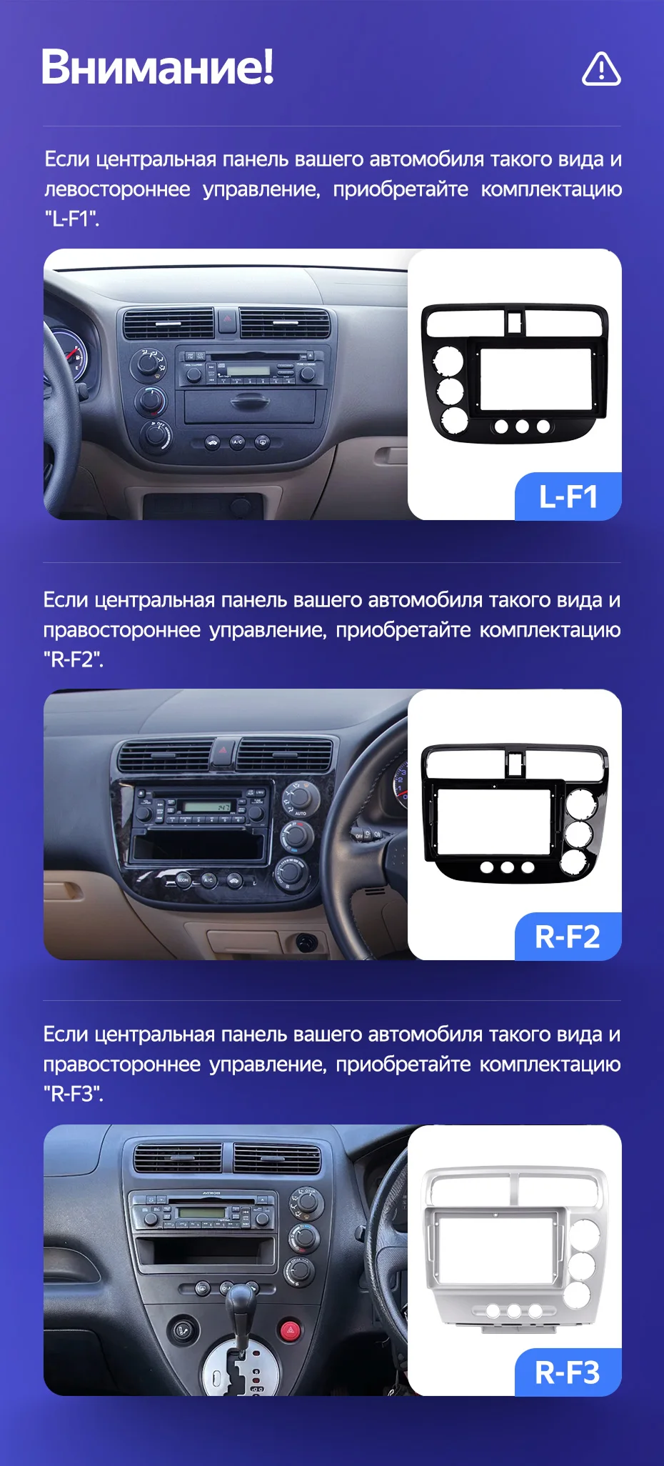 Переходная рамка Honda Civic 7 (2000-2006) F3 Правый руль (9") - купить всего за 7 000 руб. в интернет-магазине в Таганроге Teyes.com.ru. ✓ Самый лучший выбор мультимедиа ✓ Лучшая замена штатному ГУ ✓ Тел. +7 (800) 775-31-74