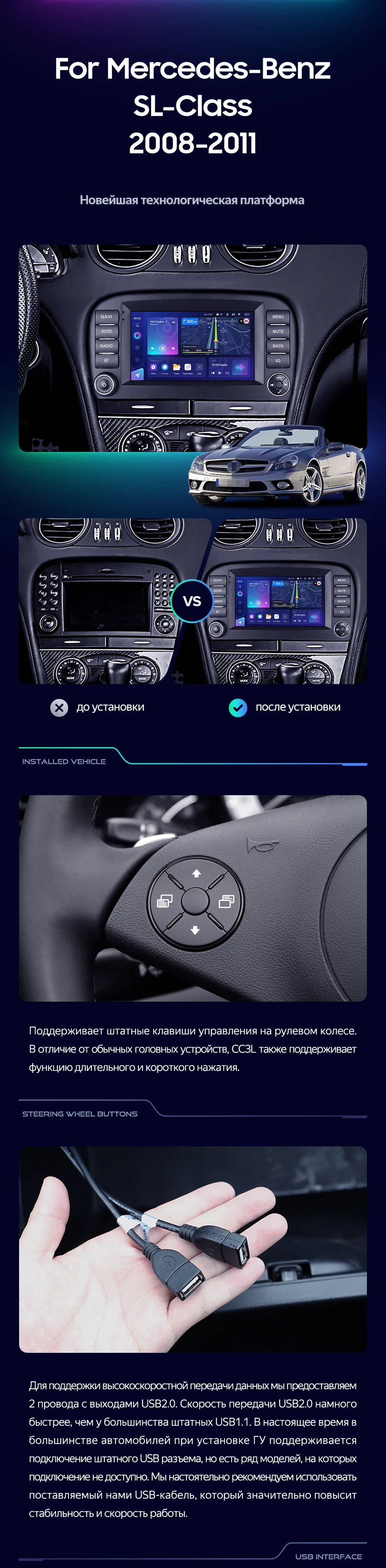 Переходная рамка Mercedes-Benz SL-Class R230 (2008-2011) (7") - купить всего за 7 000 руб. в интернет-магазине в Таганроге Teyes.com.ru. ✓ Самый лучший выбор мультимедиа ✓ Лучшая замена штатному ГУ ✓ Тел. +7 (800) 775-31-74