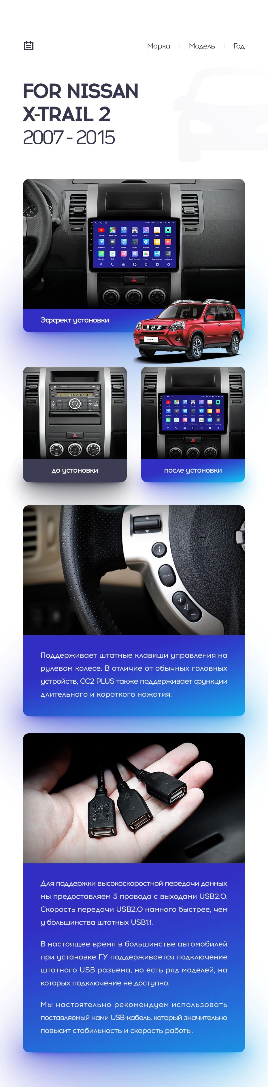 Штатная магнитола Teyes CC2L Plus 2/32 Nissan X-Trail T31 (2007-2015) - купить всего за 18 000 руб. в интернет-магазине в Таганроге Teyes.com.ru. ✓ Самый лучший выбор мультимедиа ✓ Лучшая замена штатному ГУ ✓ Тел. +7 (800) 775-31-74