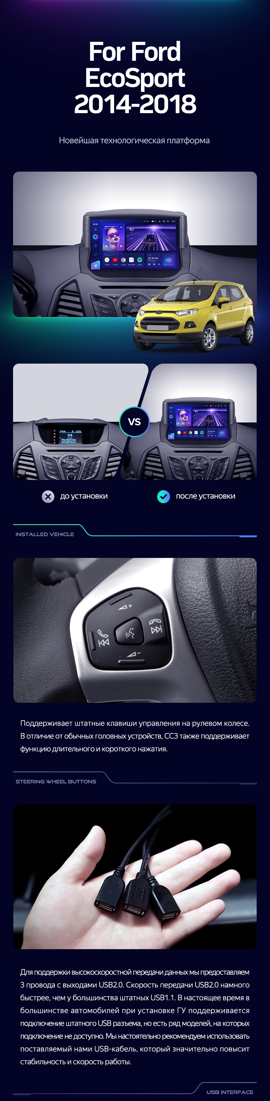 Штатная магнитола Teyes CC3 2K 4/32 Ford EcoSport (2014-2018) F1 - купить всего за 40 300 руб. в интернет-магазине в Таганроге Teyes.com.ru. ✓ Самый лучший выбор мультимедиа ✓ Лучшая замена штатному ГУ ✓ Тел. +7 (800) 775-31-74