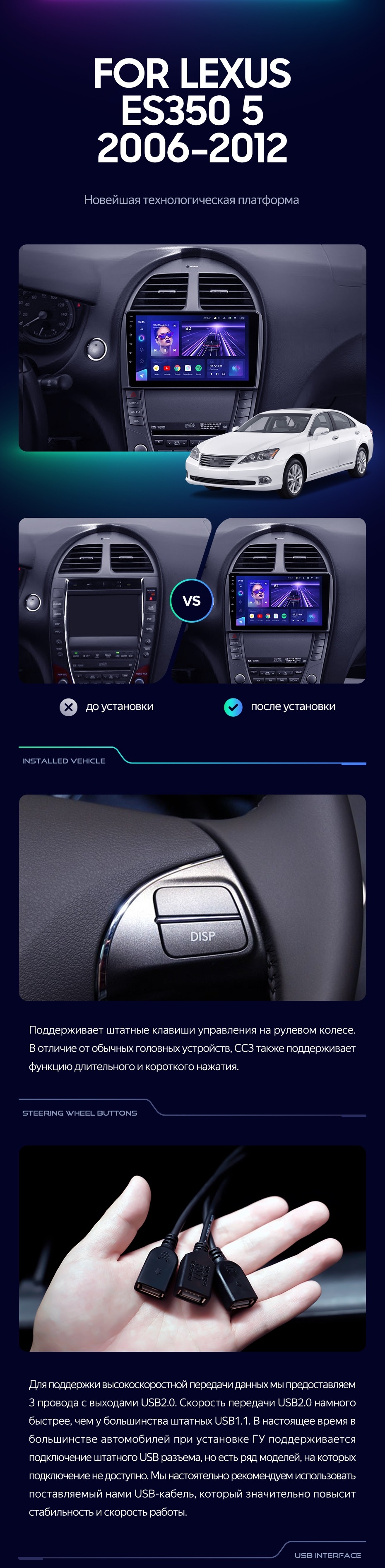 Штатная магнитола Teyes CC3 2K 4/32 Lexus ES350 5 V XV40 (2006-2012) Тип-C - купить всего за 42 500 руб. в интернет-магазине в Таганроге Teyes.com.ru. ✓ Самый лучший выбор мультимедиа ✓ Лучшая замена штатному ГУ ✓ Тел. +7 (800) 775-31-74