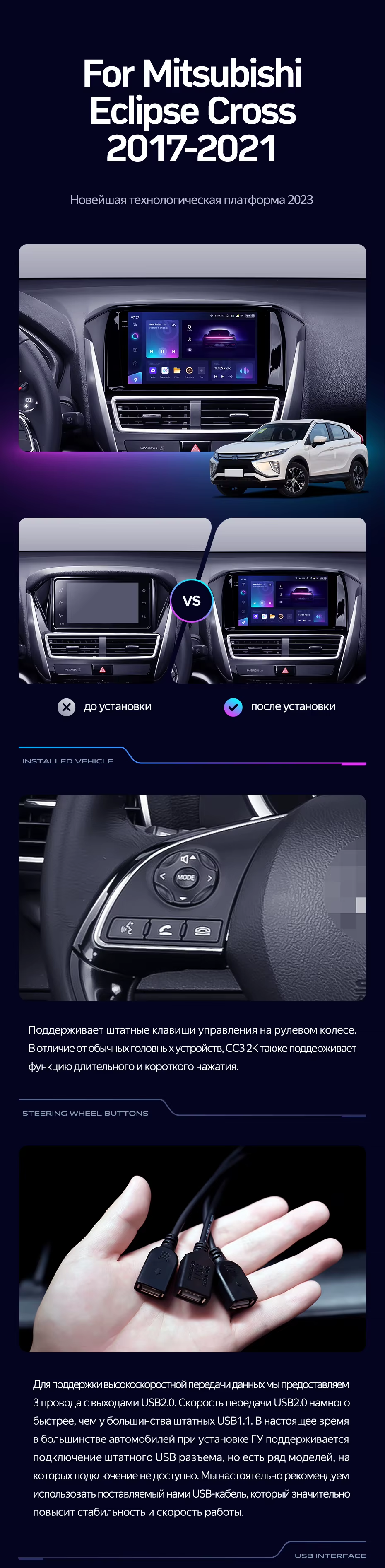 Штатная магнитола Teyes CC3 2K 4/32 Mitsubishi Eclipse Cross 1 (2017-2021) F1 - купить всего за 39 940 руб. в интернет-магазине в Таганроге Teyes.com.ru. ✓ Самый лучший выбор мультимедиа ✓ Лучшая замена штатному ГУ ✓ Тел. +7 (800) 775-31-74