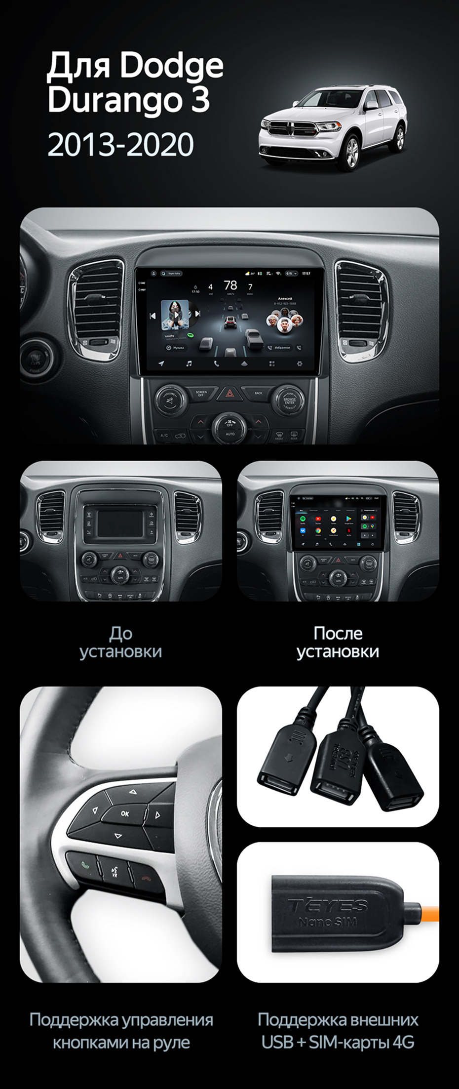 Штатная магнитола Teyes CC3 2K 360 6/128 Dodge Durango 3 (2013-2020) - купить всего за 57 500 руб. в интернет-магазине в Таганроге Teyes.com.ru. ✓ Самый лучший выбор мультимедиа ✓ Лучшая замена штатному ГУ ✓ Тел. +7 (800) 775-31-74