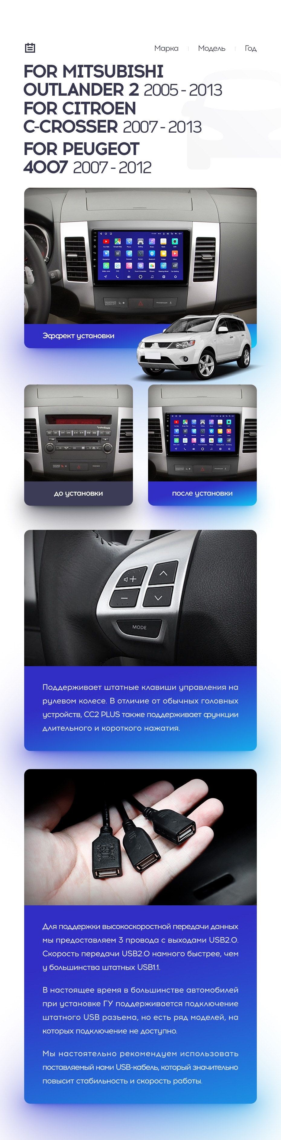 Штатная магнитола Teyes CC3 2K 4/32 Peugeot 4007 (2007-2012) Тип-A (13") - купить всего за 40 870 руб. в интернет-магазине в Таганроге Teyes.com.ru. ✓ Самый лучший выбор мультимедиа ✓ Лучшая замена штатному ГУ ✓ Тел. +7 (800) 775-31-74