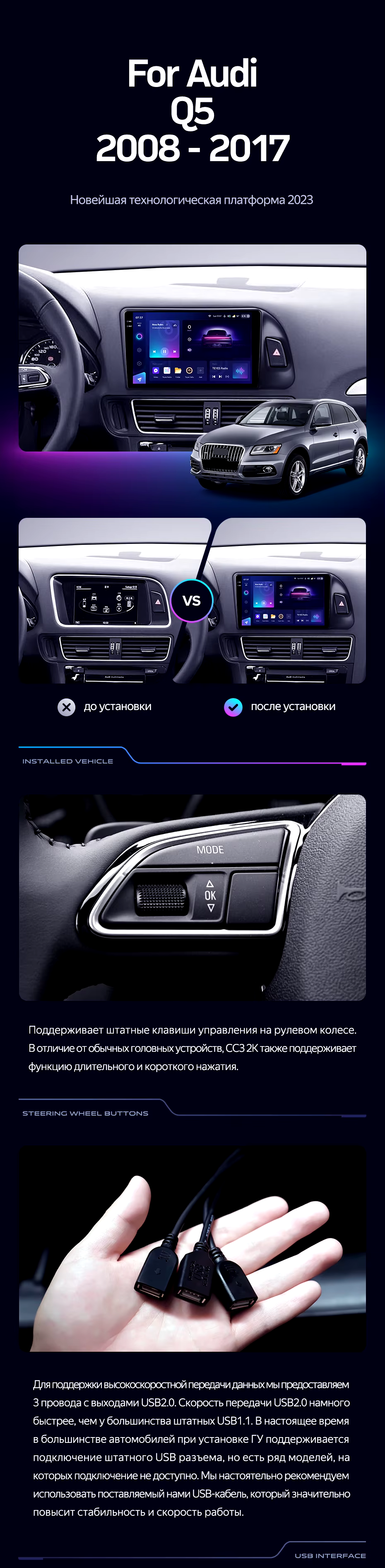 Штатная магнитола Teyes CC3 2K 6/128 Audi Q5 8R (2008-2017) Тип-B - купить всего за 49 900 руб. в интернет-магазине в Таганроге Teyes.com.ru. ✓ Самый лучший выбор мультимедиа ✓ Лучшая замена штатному ГУ ✓ Тел. +7 (800) 775-31-74