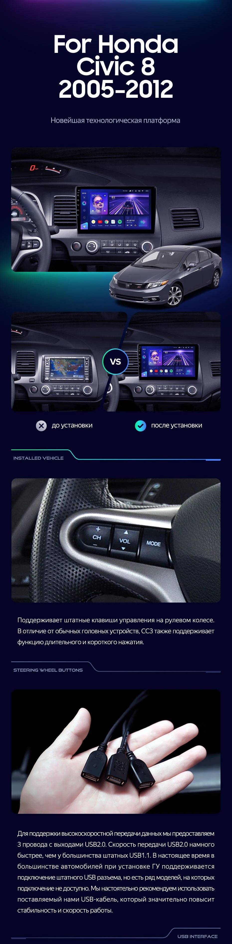 Штатная магнитола Teyes CC3 4/32 Honda Civic Hatchback (2006-2012) - купить всего за 35 970 руб. в интернет-магазине в Таганроге Teyes.com.ru. ✓ Самый лучший выбор мультимедиа ✓ Лучшая замена штатному ГУ ✓ Тел. +7 (800) 775-31-74