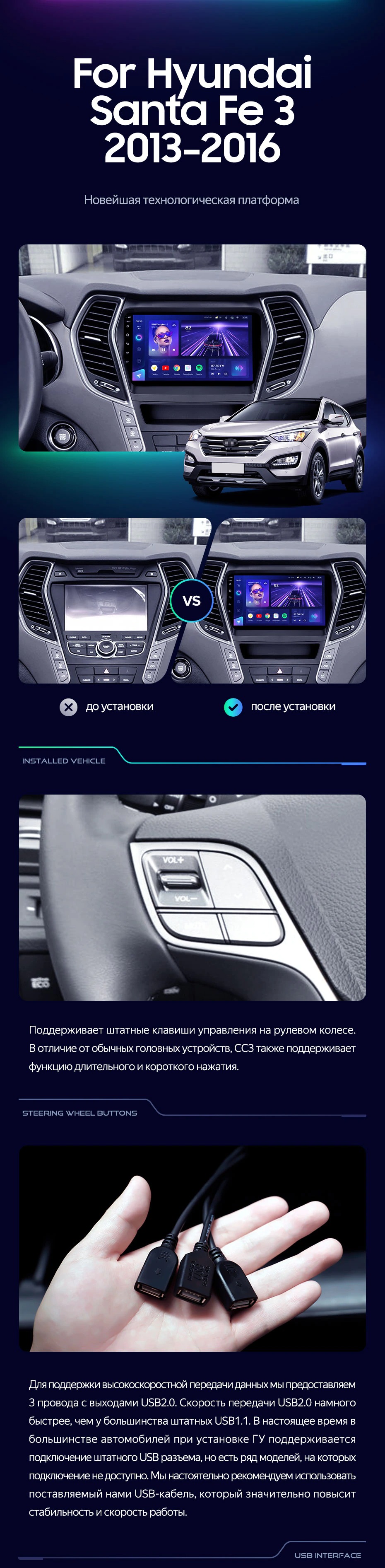 Штатная магнитола Teyes CC3 4/32 Hyundai Santa Fe 3 (2013-2016) Тип-A - купить всего за 32 030 руб. в интернет-магазине в Таганроге Teyes.com.ru. ✓ Самый лучший выбор мультимедиа ✓ Лучшая замена штатному ГУ ✓ Тел. +7 (800) 775-31-74