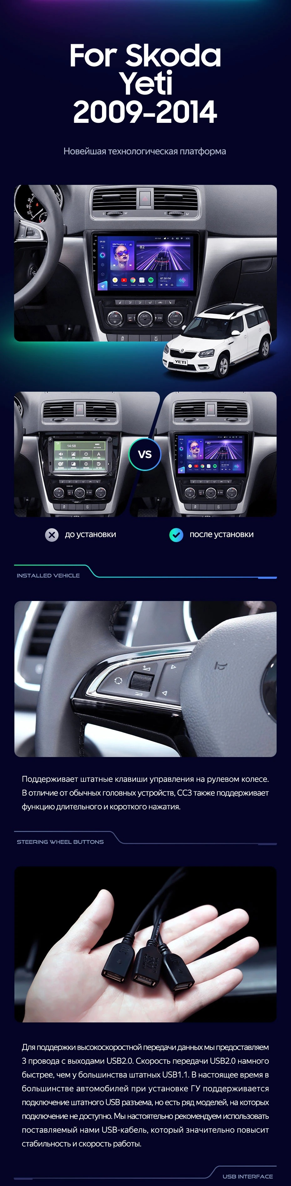 Штатная магнитола Teyes CC3 4/32 Skoda Yeti 5L (2009-2014) - купить всего за 33 300 руб. в интернет-магазине в Таганроге Teyes.com.ru. ✓ Самый лучший выбор мультимедиа ✓ Лучшая замена штатному ГУ ✓ Тел. +7 (800) 775-31-74