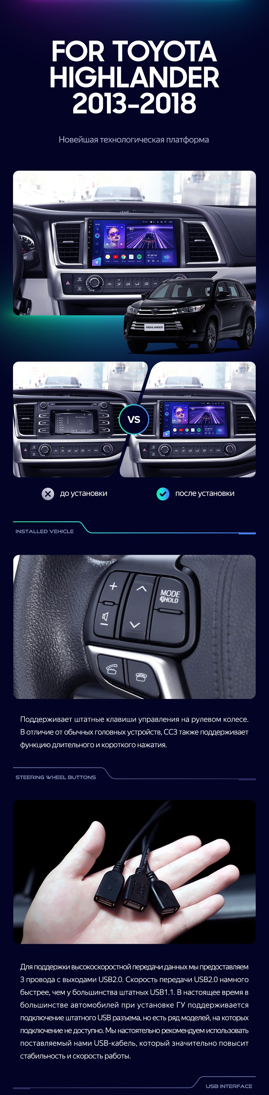 Штатная магнитола Teyes CC3 4/32 Toyota Highlander 3 XU50 (2013-2018) - купить всего за 33 240 руб. в интернет-магазине в Таганроге Teyes.com.ru. ✓ Самый лучший выбор мультимедиа ✓ Лучшая замена штатному ГУ ✓ Тел. +7 (800) 775-31-74