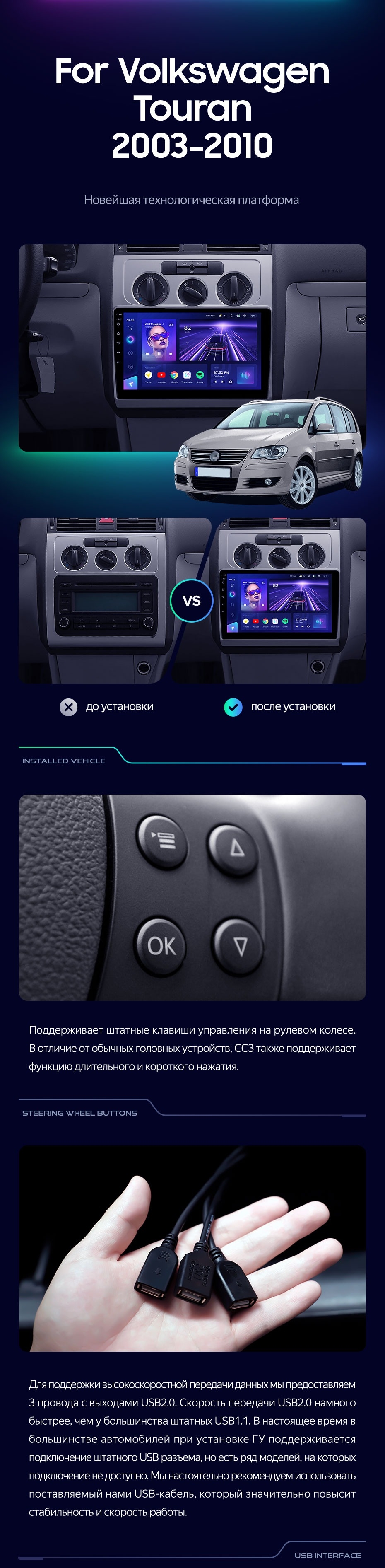 Штатная магнитола Teyes CC3 4/32 Volkswagen Touran 1 (2003-2010) F2 - купить всего за 33 800 руб. в интернет-магазине в Таганроге Teyes.com.ru. ✓ Самый лучший выбор мультимедиа ✓ Лучшая замена штатному ГУ ✓ Тел. +7 (800) 775-31-74