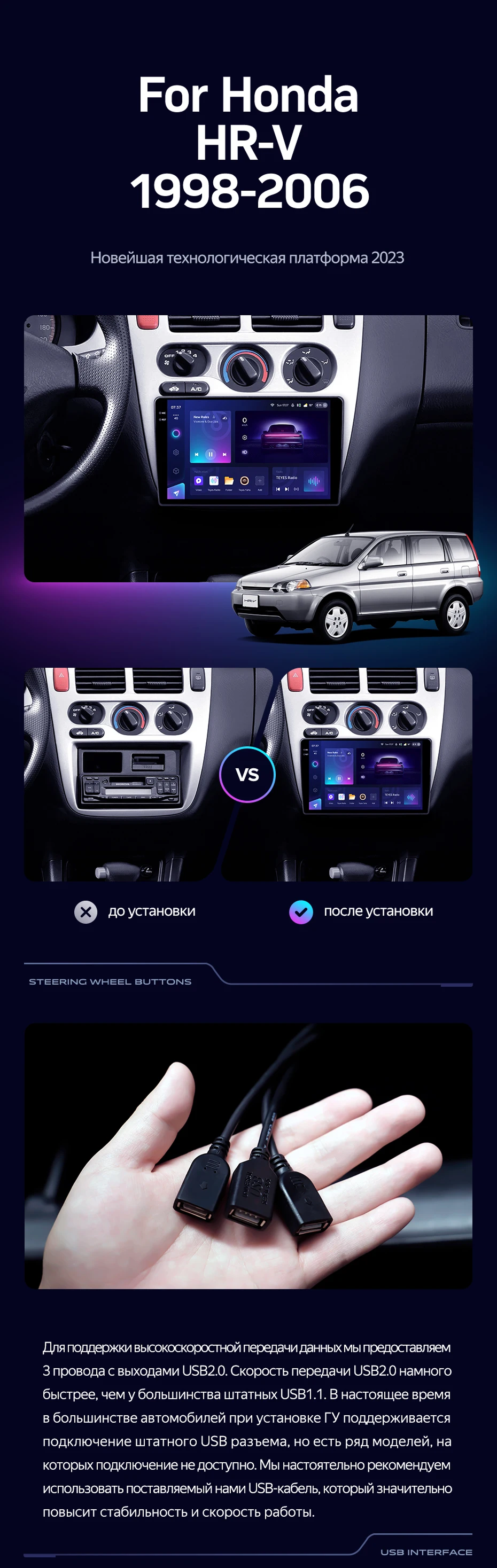 Штатная магнитола Teyes CC3 4/32 Honda HR-V 1 (1998-2006) - купить всего за 33 230 руб. в интернет-магазине в Таганроге Teyes.com.ru. ✓ Самый лучший выбор мультимедиа ✓ Лучшая замена штатному ГУ ✓ Тел. +7 (800) 775-31-74