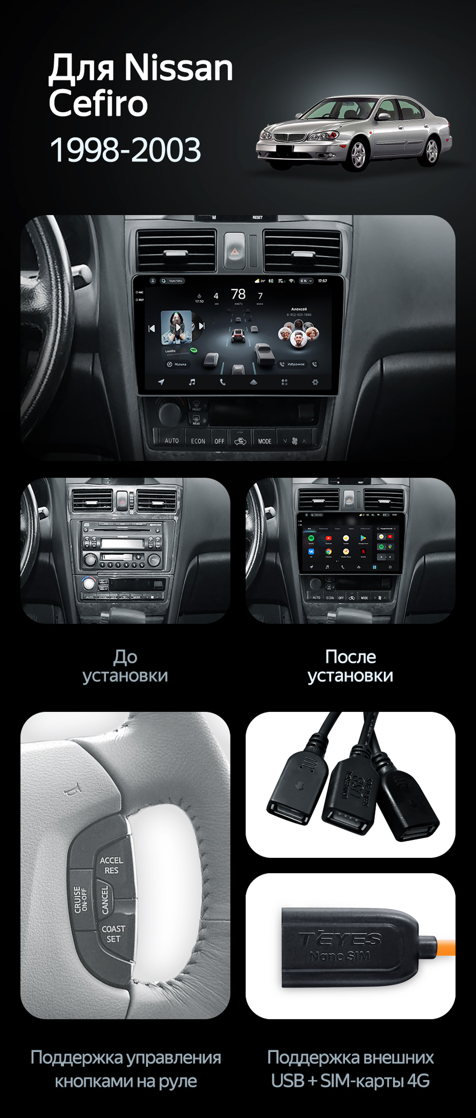 Штатная магнитола Teyes CC3 4/32 Nissan Cefiro 3 A33 (1998-2003) F2 - купить всего за 32 630 руб. в интернет-магазине в Таганроге Teyes.com.ru. ✓ Самый лучший выбор мультимедиа ✓ Лучшая замена штатному ГУ ✓ Тел. +7 (800) 775-31-74