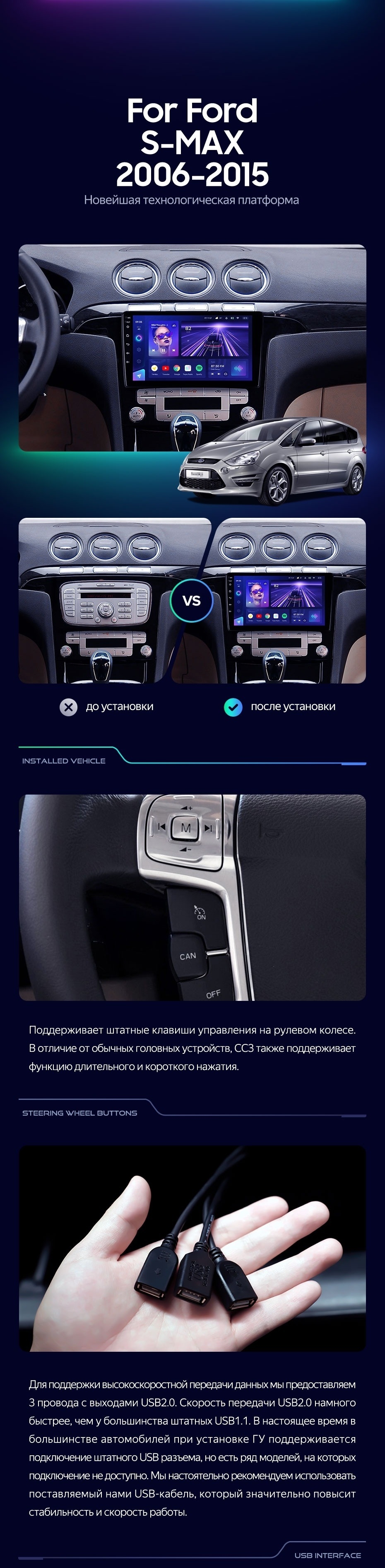 Штатная магнитола Teyes CC3L 4/32 Ford S-MAX (2006-2015) F2 - купить всего за 29 200 руб. в интернет-магазине в Таганроге Teyes.com.ru. ✓ Самый лучший выбор мультимедиа ✓ Лучшая замена штатному ГУ ✓ Тел. +7 (800) 775-31-74