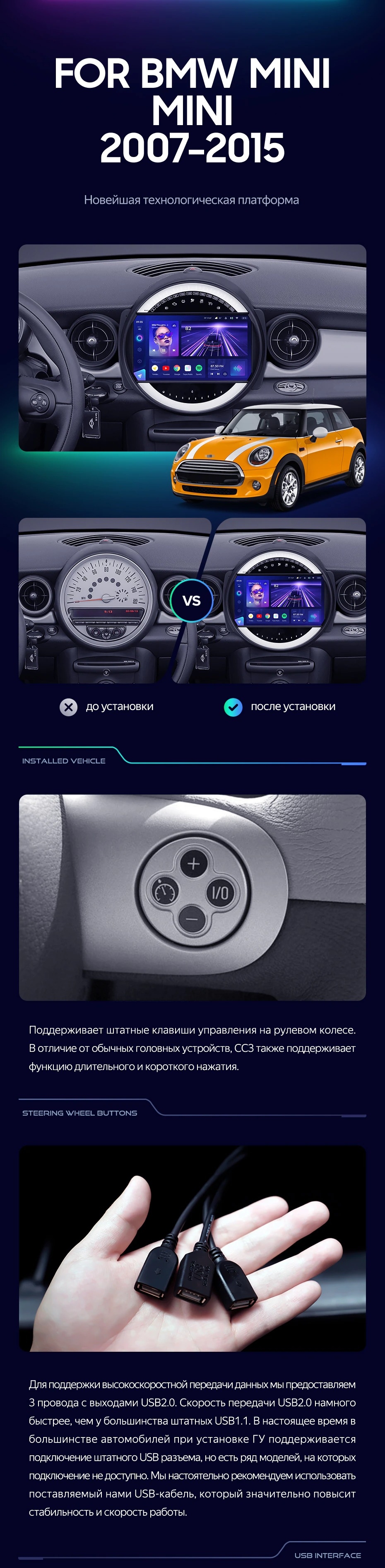 Штатная магнитола Teyes CC3L 4/32 Mini Cooper (2007-2015) F1 - купить всего за 35 800 руб. в интернет-магазине в Таганроге Teyes.com.ru. ✓ Самый лучший выбор мультимедиа ✓ Лучшая замена штатному ГУ ✓ Тел. +7 (800) 775-31-74