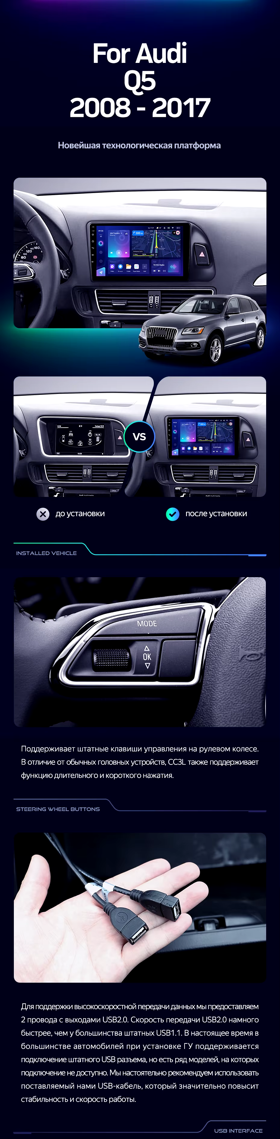 Штатная магнитола Teyes CC3L 4/64 Audi Q5 8R (2008-2017) Тип-A - купить всего за 33 750 руб. в интернет-магазине в Таганроге Teyes.com.ru. ✓ Самый лучший выбор мультимедиа ✓ Лучшая замена штатному ГУ ✓ Тел. +7 (800) 775-31-74
