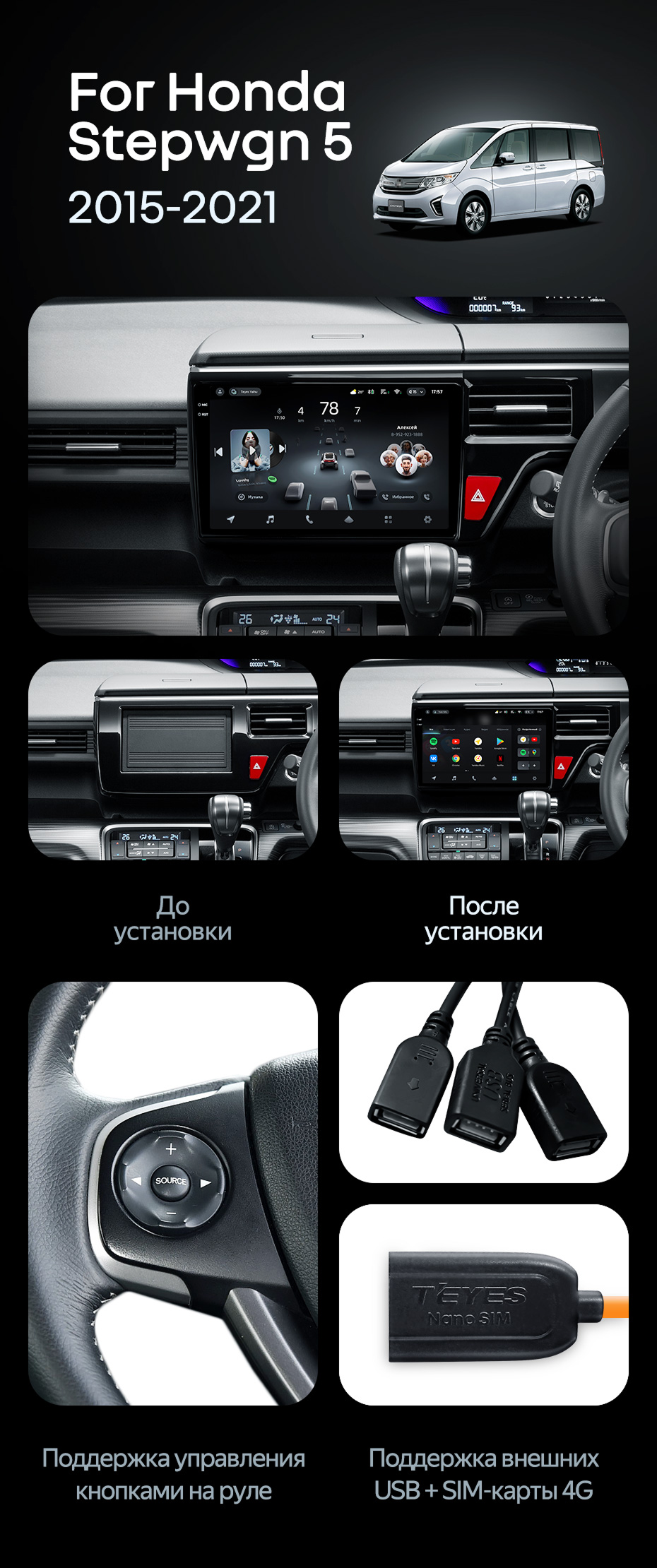 Штатная магнитола Teyes CC4 6/64 Honda Stepwgn 5 (2015-2021) правый руль - купить всего за 48 500 руб. в интернет-магазине в Таганроге Teyes.com.ru. ✓ Самый лучший выбор мультимедиа ✓ Лучшая замена штатному ГУ ✓ Тел. +7 (800) 775-31-74