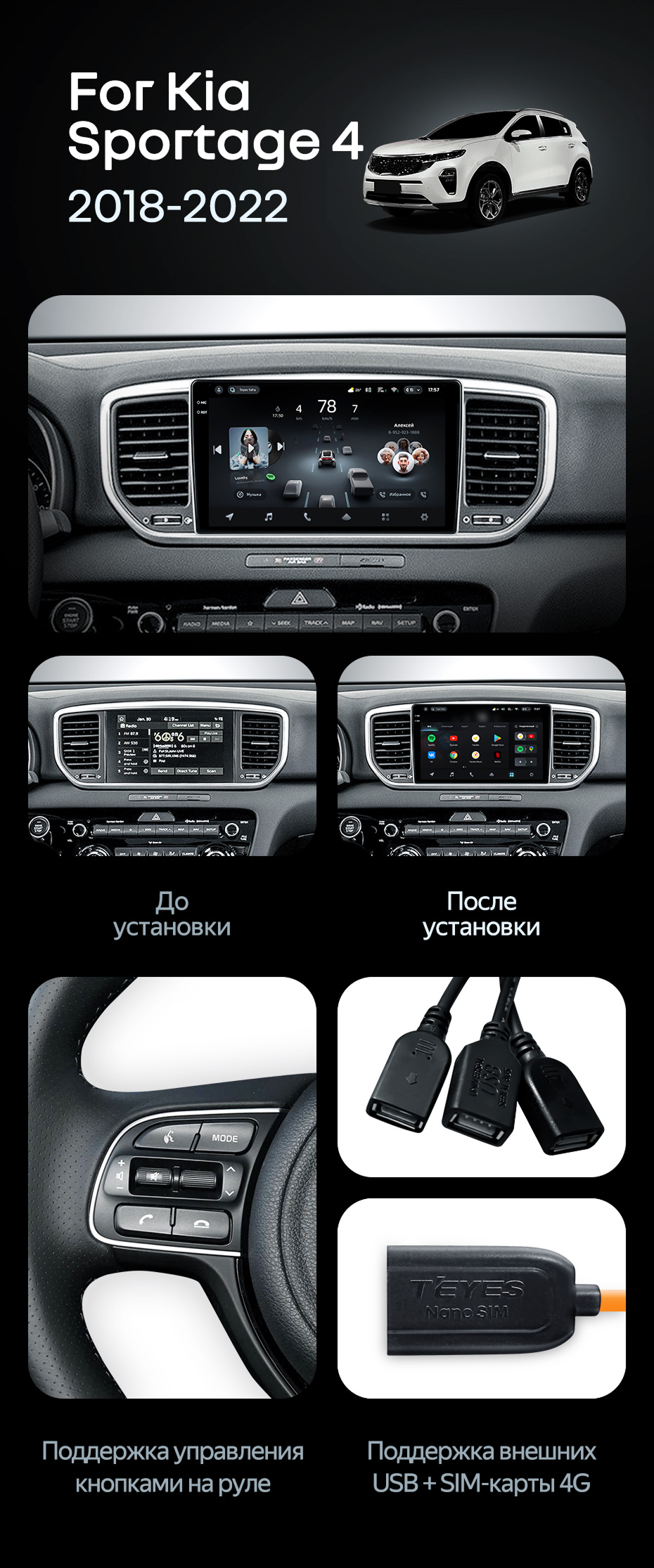 Штатная магнитола Teyes CC4 6/64 Kia Sportage 4 QL (2018-2022) Тип-B - купить всего за 45 390 руб. в интернет-магазине в Таганроге Teyes.com.ru. ✓ Самый лучший выбор мультимедиа ✓ Лучшая замена штатному ГУ ✓ Тел. +7 (800) 775-31-74