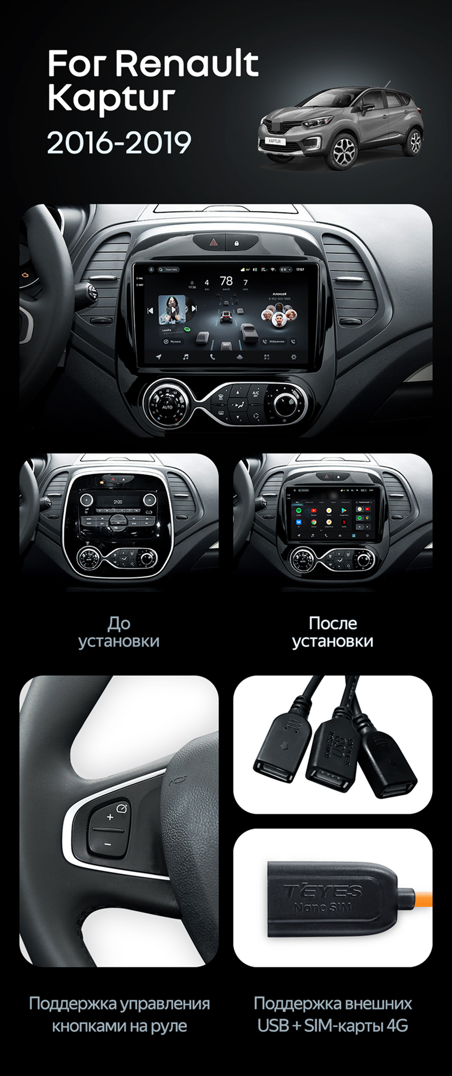 Штатная магнитола Teyes CC4 6/64 Renault Kaptur (2016-2019) F1 - купить всего за 46 050 руб. в интернет-магазине в Таганроге Teyes.com.ru. ✓ Самый лучший выбор мультимедиа ✓ Лучшая замена штатному ГУ ✓ Тел. +7 (800) 775-31-74