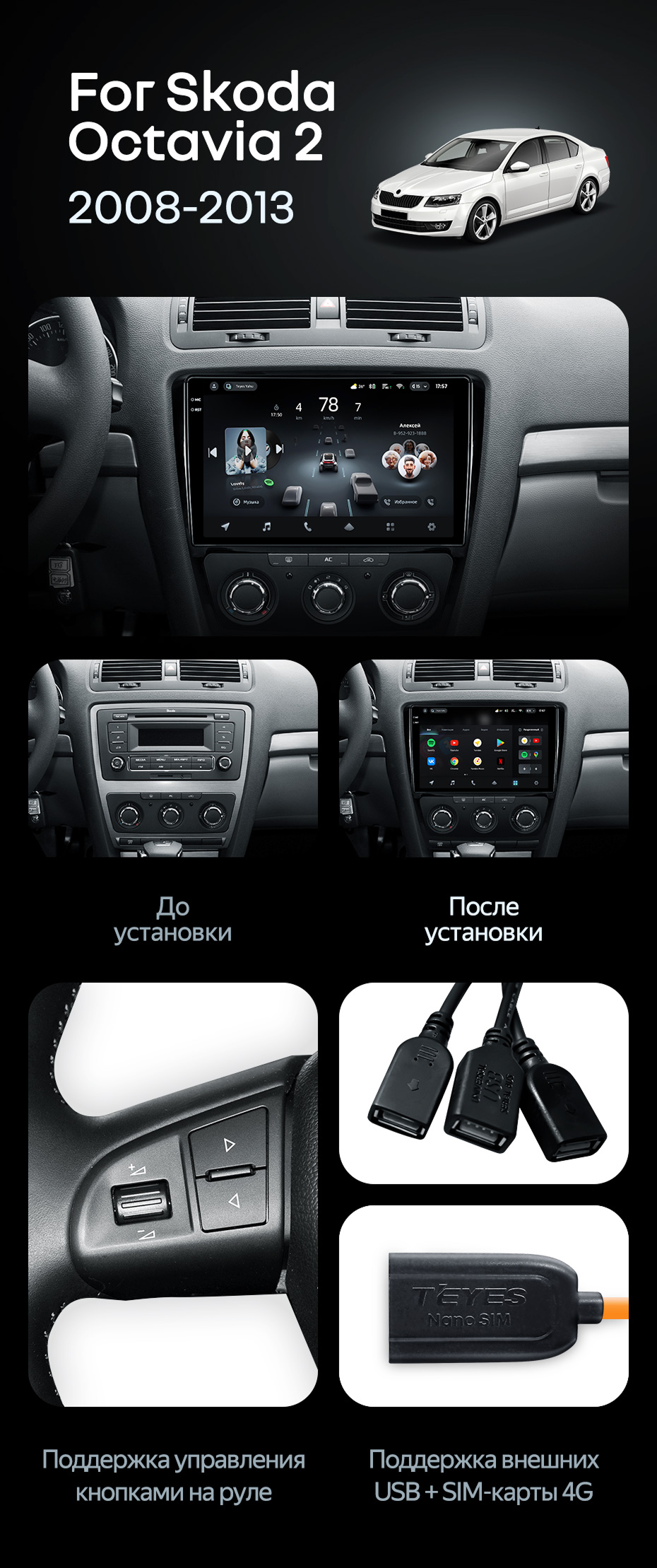 Штатная магнитола Teyes CC4 6/64 Skoda Octavia 2 A5 (2008-2013) - купить всего за 48 030 руб. в интернет-магазине в Таганроге Teyes.com.ru. ✓ Самый лучший выбор мультимедиа ✓ Лучшая замена штатному ГУ ✓ Тел. +7 (800) 775-31-74