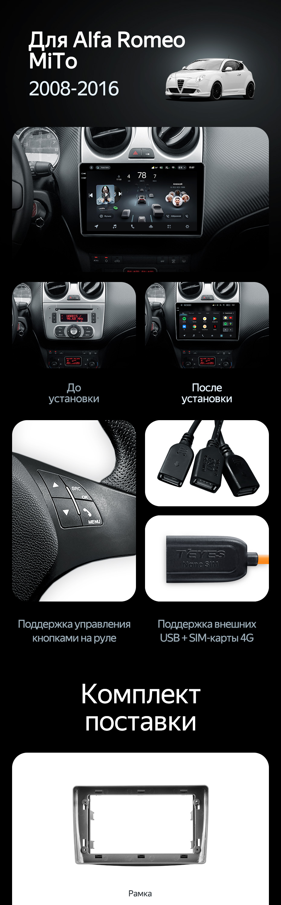 Штатная магнитола Teyes CC4 8/128 Alfa Romeo MiTo 955 (2008-2016) - купить всего за 55 700 руб. в интернет-магазине в Таганроге Teyes.com.ru. ✓ Самый лучший выбор мультимедиа ✓ Лучшая замена штатному ГУ ✓ Тел. +7 (800) 775-31-74