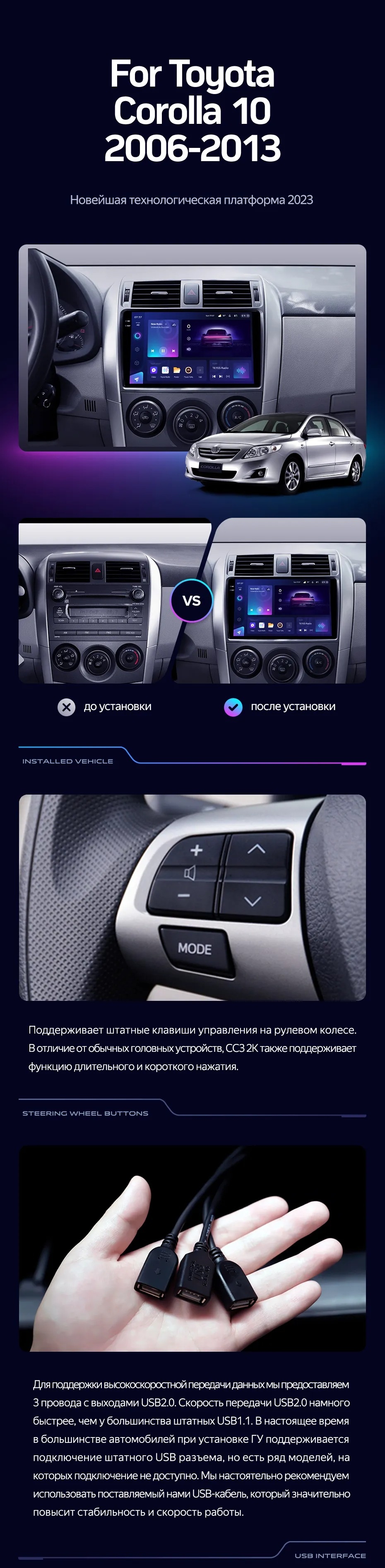 Штатная магнитола Teyes CC4 8/128 Toyota Corolla 10 E140 E150 (2006-2013) Тип-A - купить всего за 47 460 руб. в интернет-магазине в Таганроге Teyes.com.ru. ✓ Самый лучший выбор мультимедиа ✓ Лучшая замена штатному ГУ ✓ Тел. +7 (800) 775-31-74