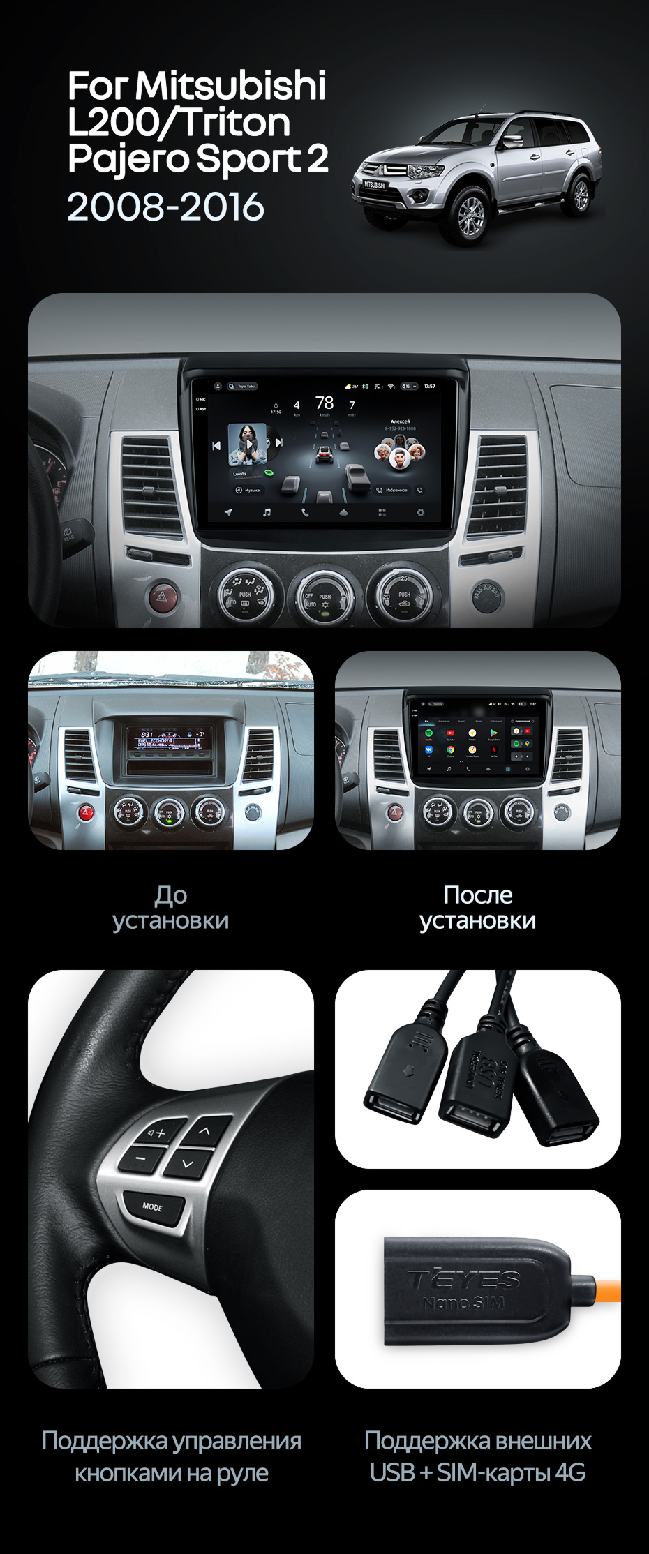 Штатная магнитола Teyes CC4 Pro 12/256 Mitsubishi L200 (2008-2016) - купить всего за 69 350 руб. в интернет-магазине в Таганроге Teyes.com.ru. ✓ Самый лучший выбор мультимедиа ✓ Лучшая замена штатному ГУ ✓ Тел. +7 (800) 775-31-74