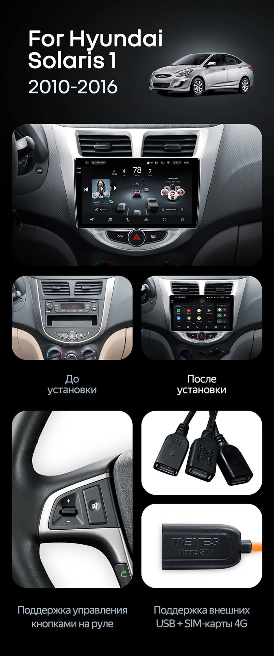 Штатная магнитола Teyes CC4 Pro 8/128 Hyundai Solaris 1 (2010-2016) F1 - купить всего за 57 850 руб. в интернет-магазине в Таганроге Teyes.com.ru. ✓ Самый лучший выбор мультимедиа ✓ Лучшая замена штатному ГУ ✓ Тел. +7 (800) 775-31-74