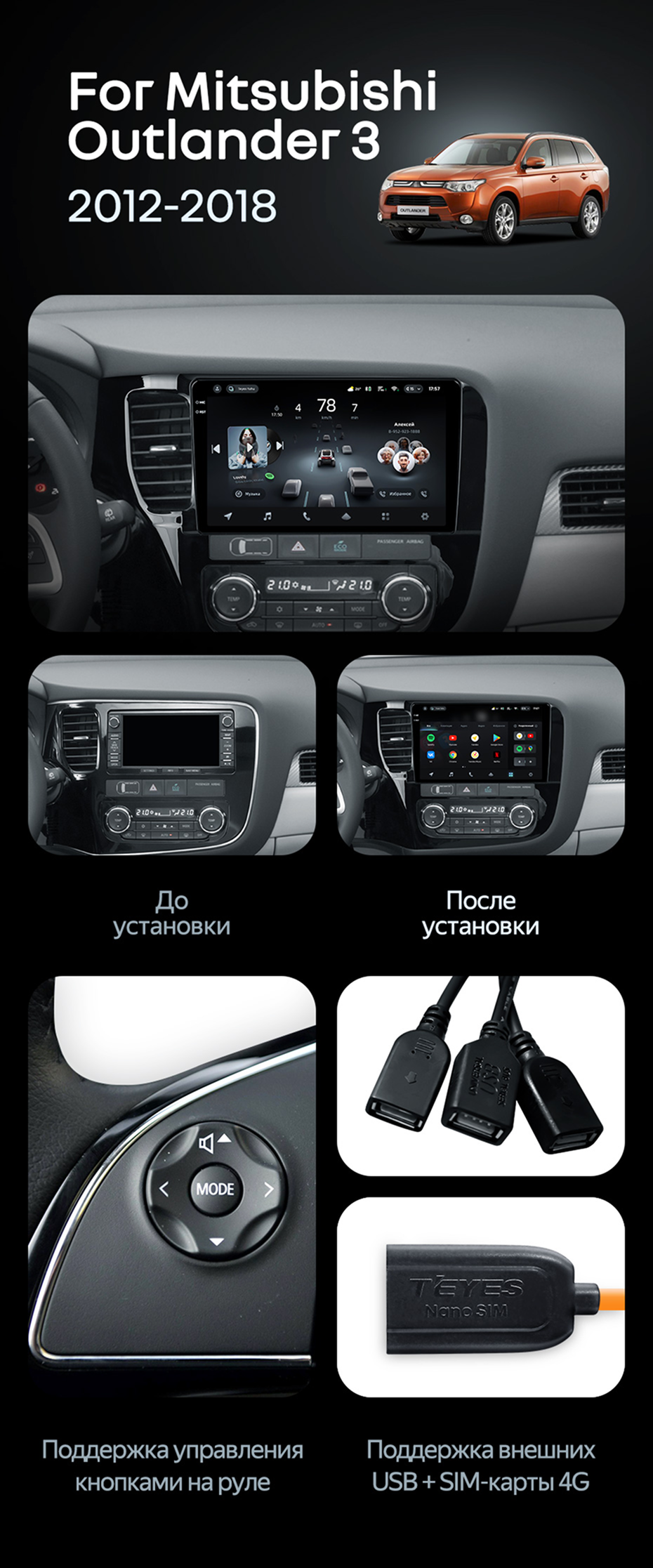 Штатная магнитола Teyes CC4 Pro 8/128 Mitsubishi Outlander 3 (2012-2018) Тип-A - купить всего за 58 300 руб. в интернет-магазине в Таганроге Teyes.com.ru. ✓ Самый лучший выбор мультимедиа ✓ Лучшая замена штатному ГУ ✓ Тел. +7 (800) 775-31-74