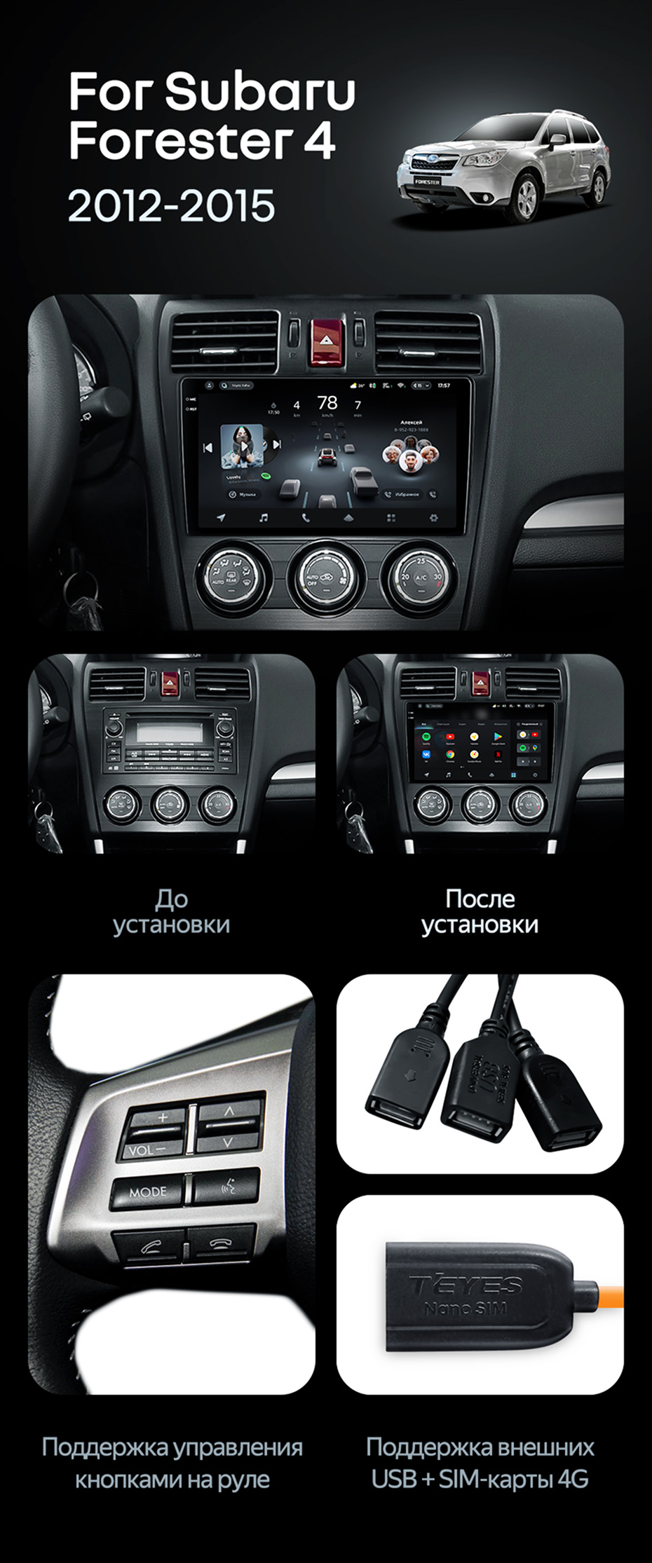 Штатная магнитола Teyes CC4 Pro 8/128 Subaru Forester 4 SJ (2012-2015) Тип-A - купить всего за 58 150 руб. в интернет-магазине в Таганроге Teyes.com.ru. ✓ Самый лучший выбор мультимедиа ✓ Лучшая замена штатному ГУ ✓ Тел. +7 (800) 775-31-74