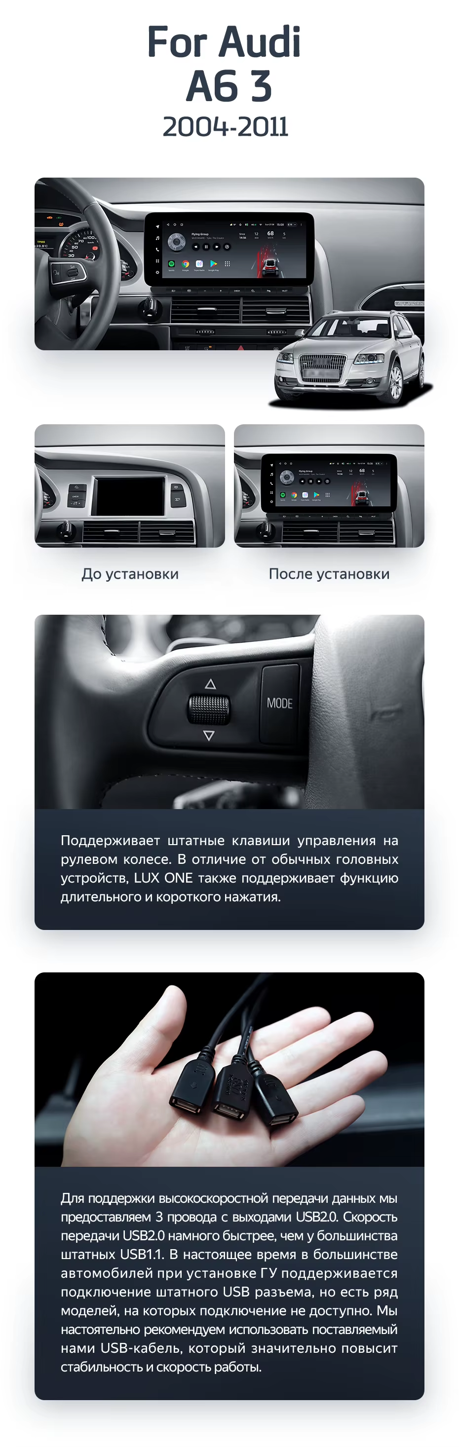 Штатная магнитола Teyes LUX ONE 4/64 Audi A6 3 C6 (2004-2011) - купить всего за 43 400 руб. в интернет-магазине в Таганроге Teyes.com.ru. ✓ Самый лучший выбор мультимедиа ✓ Лучшая замена штатному ГУ ✓ Тел. +7 (800) 775-31-74