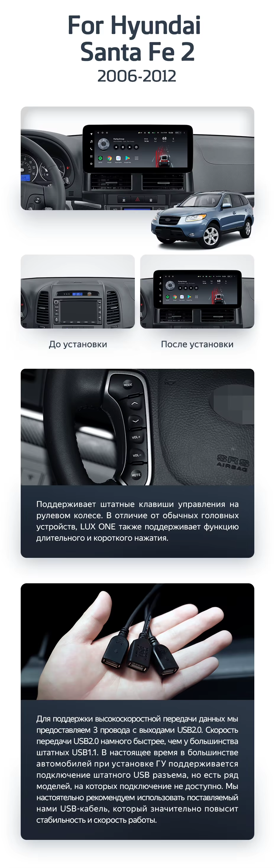 Штатная магнитола Teyes LUX ONE 4/64 Hyundai Santa Fe 2 (2006-2012) - купить всего за 46 300 руб. в интернет-магазине в Таганроге Teyes.com.ru. ✓ Самый лучший выбор мультимедиа ✓ Лучшая замена штатному ГУ ✓ Тел. +7 (800) 775-31-74