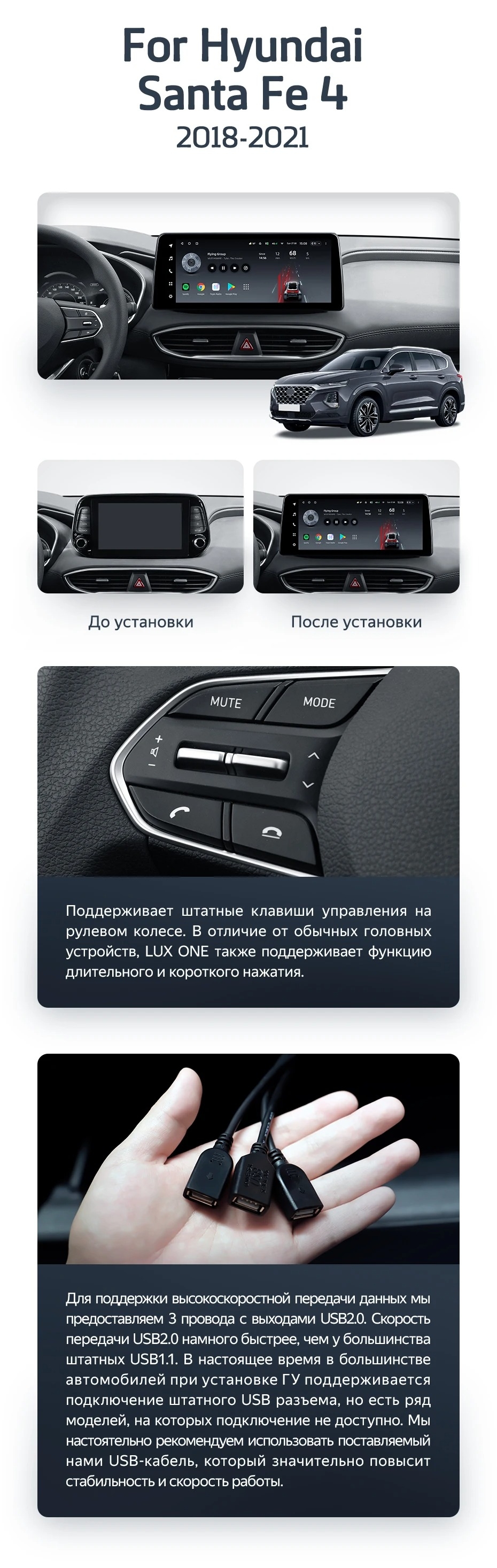 Штатная магнитола Teyes LUX ONE 6/128 Hyundai Santa Fe 4 (2018-2021) - купить всего за 45 800 руб. в интернет-магазине в Таганроге Teyes.com.ru. ✓ Самый лучший выбор мультимедиа ✓ Лучшая замена штатному ГУ ✓ Тел. +7 (800) 775-31-74
