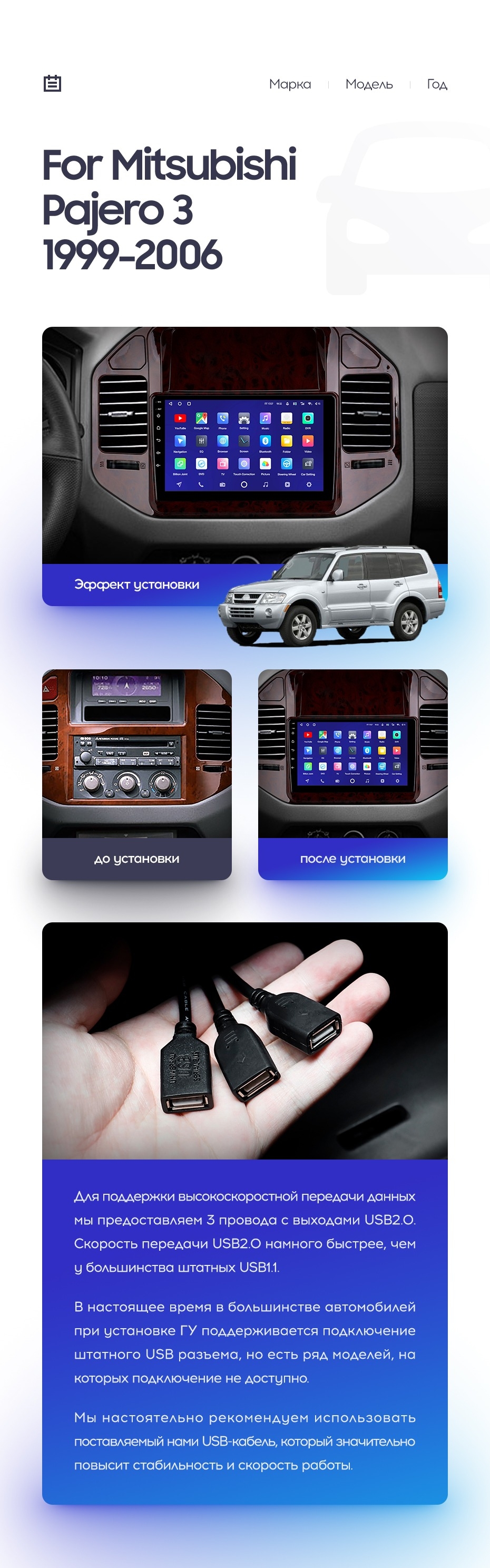 Полный комплект установки магнитолы Teyes с рамкой и проводкой можно выбрать в каталоге штатных магнитол Mitsubishi Pajero 3 V70 V60 (1999-2006).