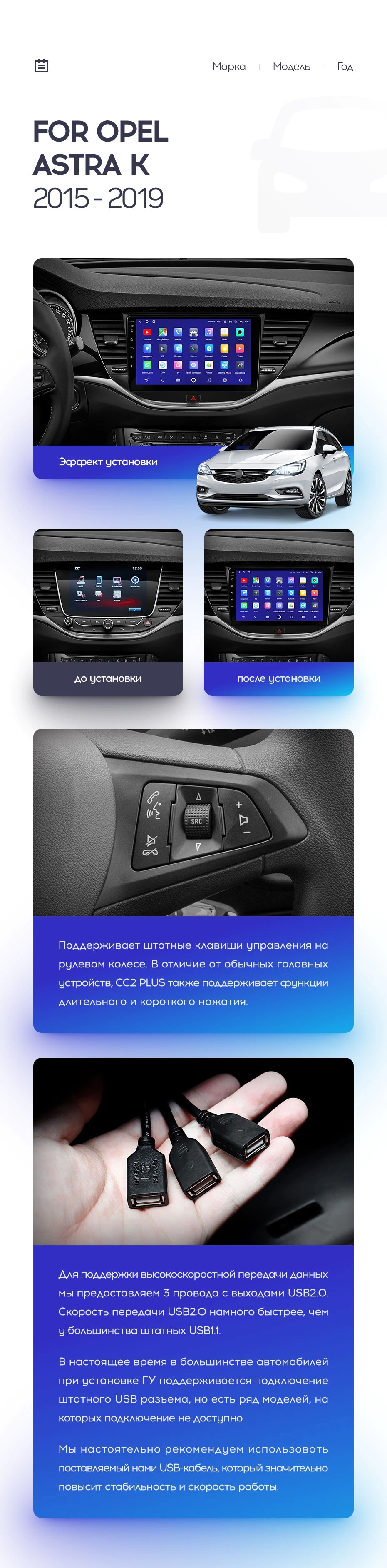 Полный комплект установки магнитолы Teyes с рамкой и проводкой можно выбрать в каталоге штатных магнитол Opel Astra K (2015-2019).