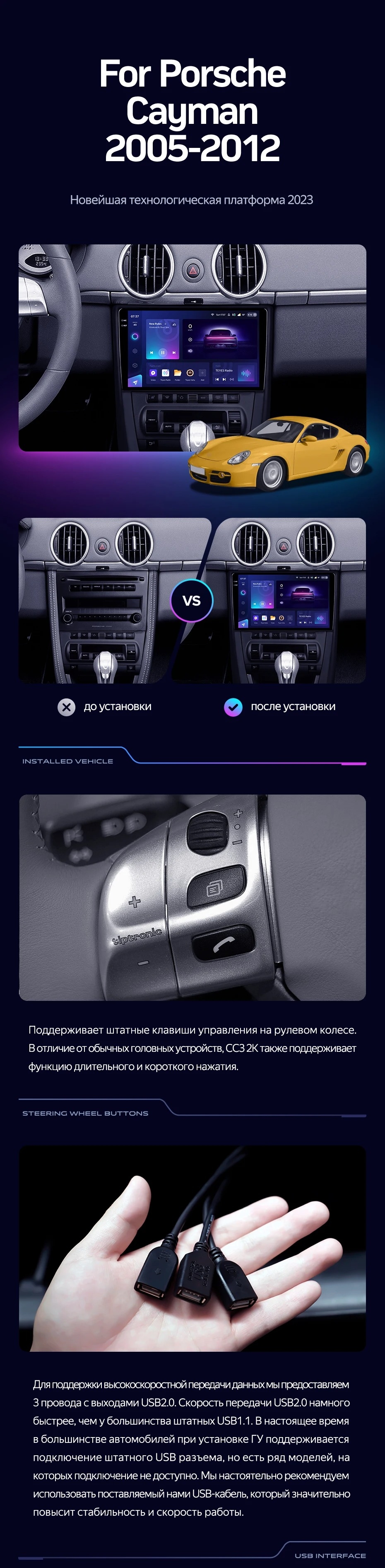 Полный комплект установки магнитолы Teyes с рамкой и проводкой можно выбрать в каталоге штатных магнитол Porsche Cayman 987 (2005-2012).