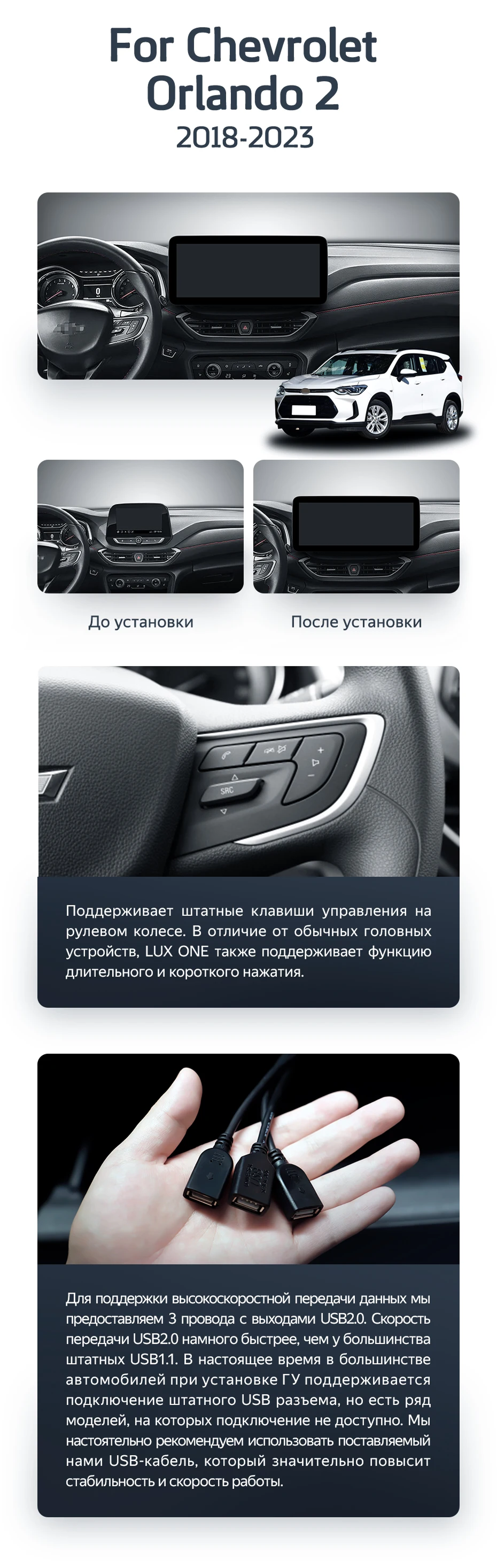 Полный комплект установки магнитолы Teyes с рамкой и проводкой можно выбрать в каталоге штатных магнитол Chevrolet Orlando 2 (2018-2023).